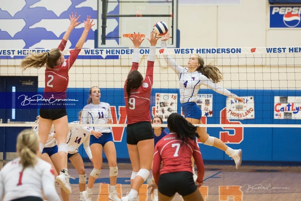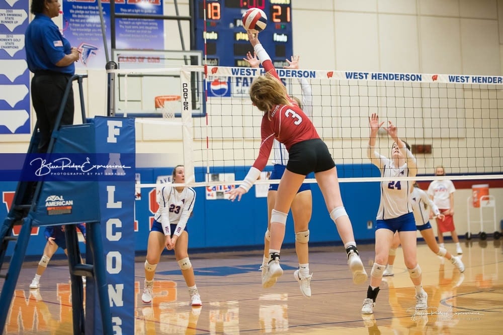 This was quite the game, and quite an upset by a talented Hendersonville Volleyball team against a regional powerhouse and talented West Henderson. The Bearcat Seniors, who had never beaten the Falcons, played a great game to defeat West Henderson in 3 sets.